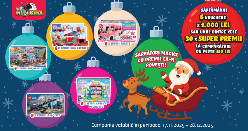 NORIEL: cumpără produse de minimum 150 lei, înscrie bonul pe noriel.ro și poți câștiga săptămânal, prin tragere la sorți: vouchere Noriel de 1000 lei și premii magice!