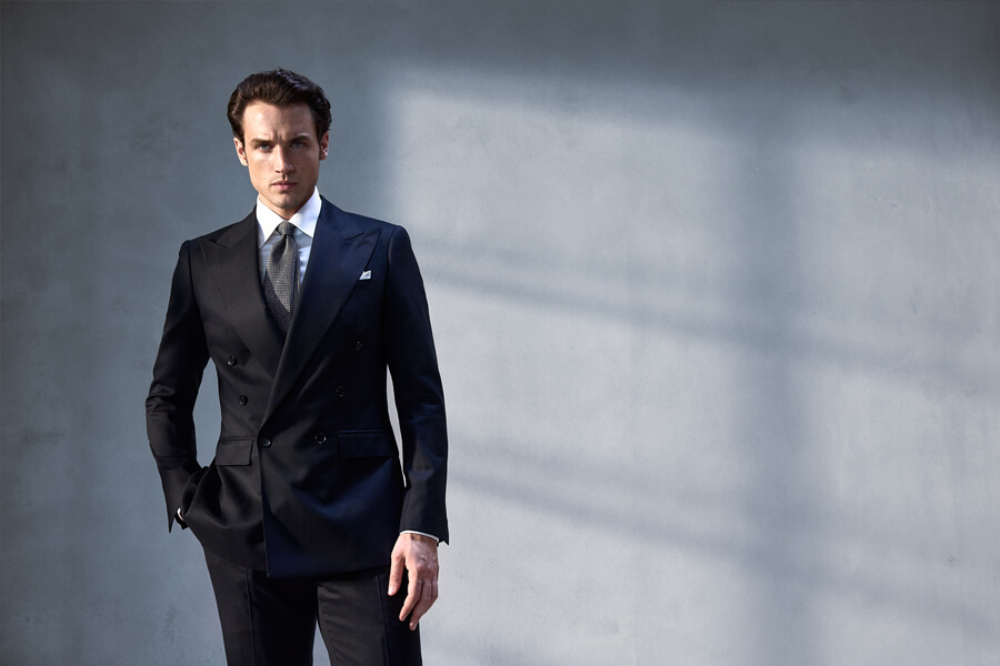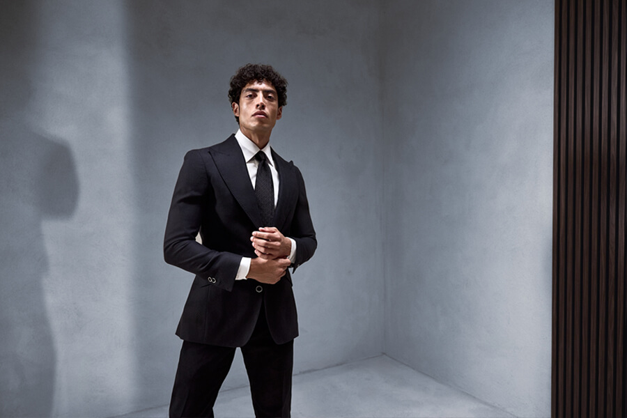 Viggo AW25/26 reuneste directii complementare ale elegantei masculine: costume double-breasted bleumarin ancorate in traditia sartoriala, tailoring cu proportii accentuate precum rever amplu sau talie marcata, dar si minimalism formal, exprimat prin costume cu dungi discrete si nasturi metalici.