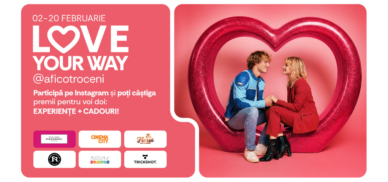 LOVE YOUR WAY este despre cupluri diferite, gusturi diferite și momente care nu seamănă unele cu altele — dar care se întâmplă în același loc. Pentru că AFI Cotroceni este atât de ofertant, încât fiecare poveste de iubire își găsește propriul scenariu: romantic, jucăuș, spontan sau pur și simplu delicios.