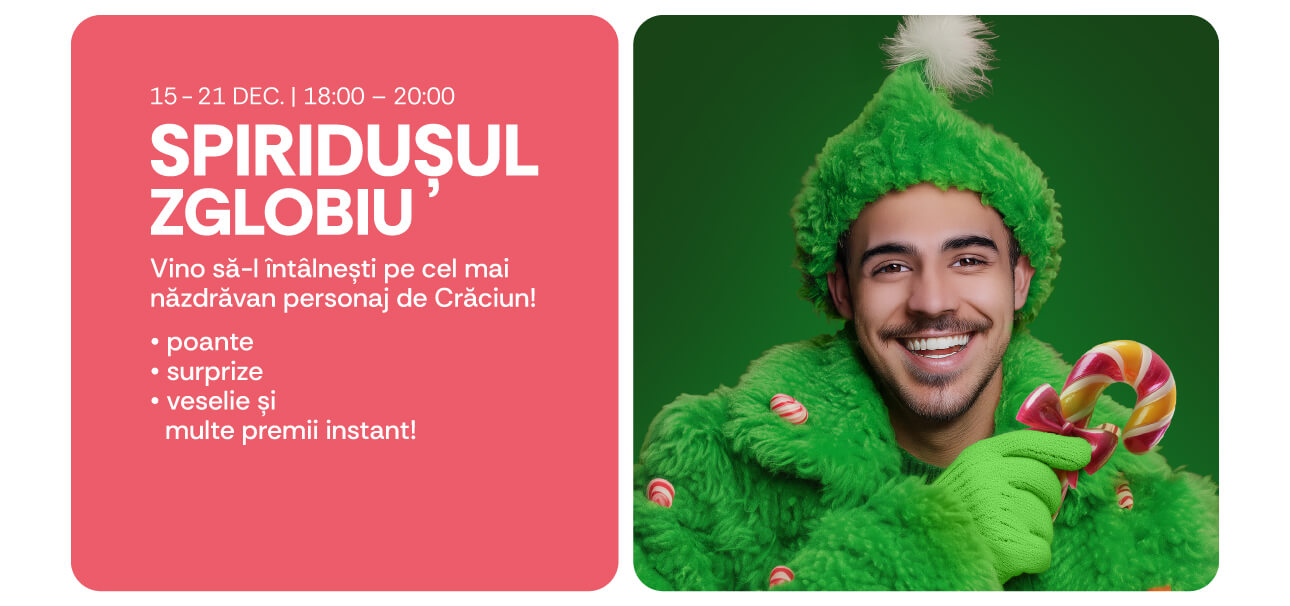 Hai să te distrezi, să faci poze și să intri în spiritul sărbătorilor alături de Spiridușul Zglobiu!