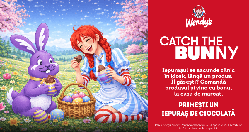 Wendy's: Găsește iepurașul la kiosk, cumpără produsul și ia-ți cadoul dulce!